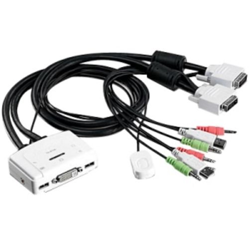 The 2-Port DVI USB KVM Switch with Audio, model TK-214i, allows you to control 2 PC and/or Mac computers with one set of console controls. Manage laptops or desktops that have DVI, USB, and audio ports at the touch of a button with one set of USB keyboard, USB mouse, DVI monitor, microphone, and speakers. No driver installation required, simply plug in the devices to control 2 computers. A convenient toggle switch with a 1.5 m (5 ft.) extension cable can be placed in the most ergonomic location on your workstation. View crystal clear Digital Video Interface (DVI) resolution at up to 1920 x 1200 pixels. Built in 0.9 m (3 ft.) combination cables include all the necessary USB, DVI, and audio connectors for each respective computer. This KVM switch does not need to be plugged into an outlet?it is powered by the connected computers. Download a Windows and Mac compatible utility to define Hot Keys, manage multiple audio ports, and create Auto Scan intervals.